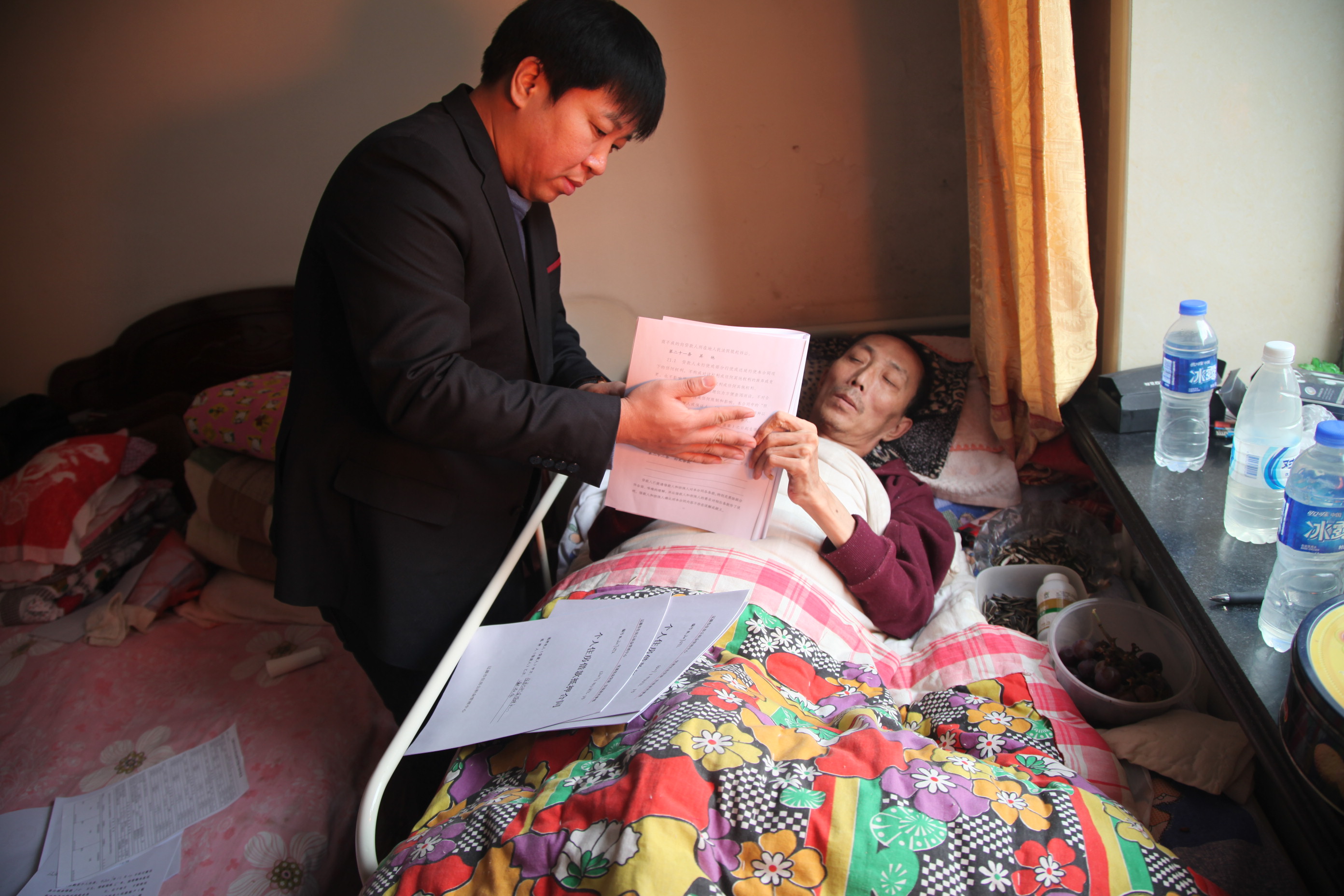 原来这位女士的家属谢先生,是辽源市农村实验中学的一名教师,因为身体原因导致瘫痪在床,无法行动。今年,为了改善居住条件,更好的修养身体,全家决定向公积金贷款重新购买一套住房。在办理贷款过程中,谢先生家属来到公积金信贷科了解到办理贷款必须缴存人本人来办理,而居住偏远郊区的谢先生在这冷冬之际想要出门实在是心有余而力不足。信贷科办理业务科员在了解了谢先生家的实际情况后,立即向本科科长做了汇报,信贷科于科长第一时间找到了中心业务主任郝毅,在经过研究后,本着“以人为本,服务为先”的理念,决定由信贷科业务人员到谢先生家里,进行现场办公。在谢先生家,中心业务人员紧张有序地严格按照操作流程进行业务办理,最终谢先生顺利地在公积金完成了贷款业务。